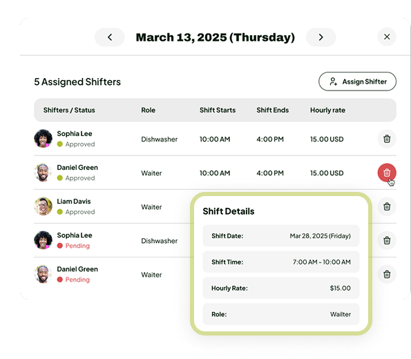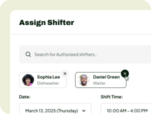 Add shifts and assign trusted workers with a few clicks.